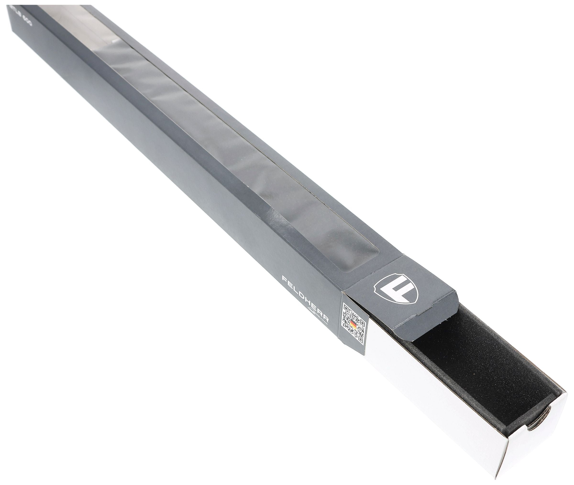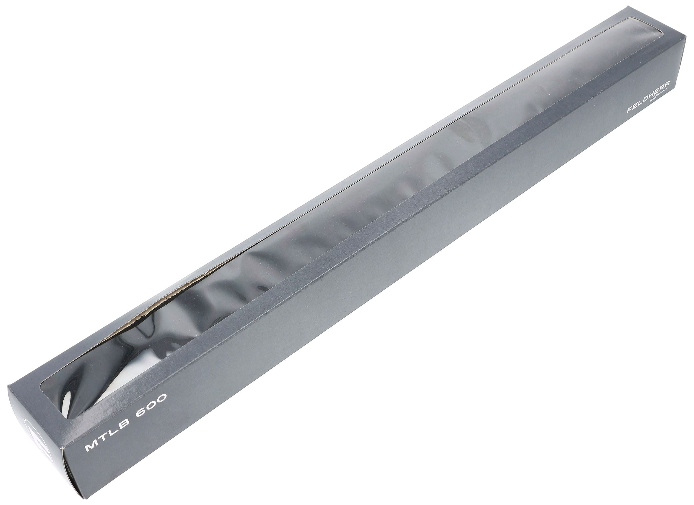 Le MTLB600 est doté d'un système innovant d'insertion par glissement. Le carton extérieur robuste forme une unité fermée avec une fenêtre de visualisation intégrée, dans laquelle un carton intérieur séparé avec une base en mousse se glisse confortablement depuis le côté droit ou gauche. Cette conception bien pensée offre des avantages décisifs pour les véhicules les plus longs :