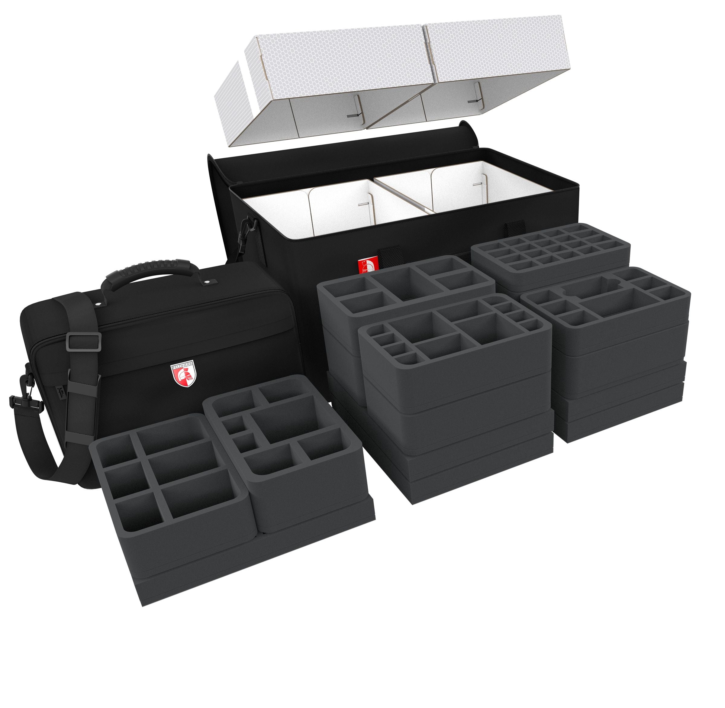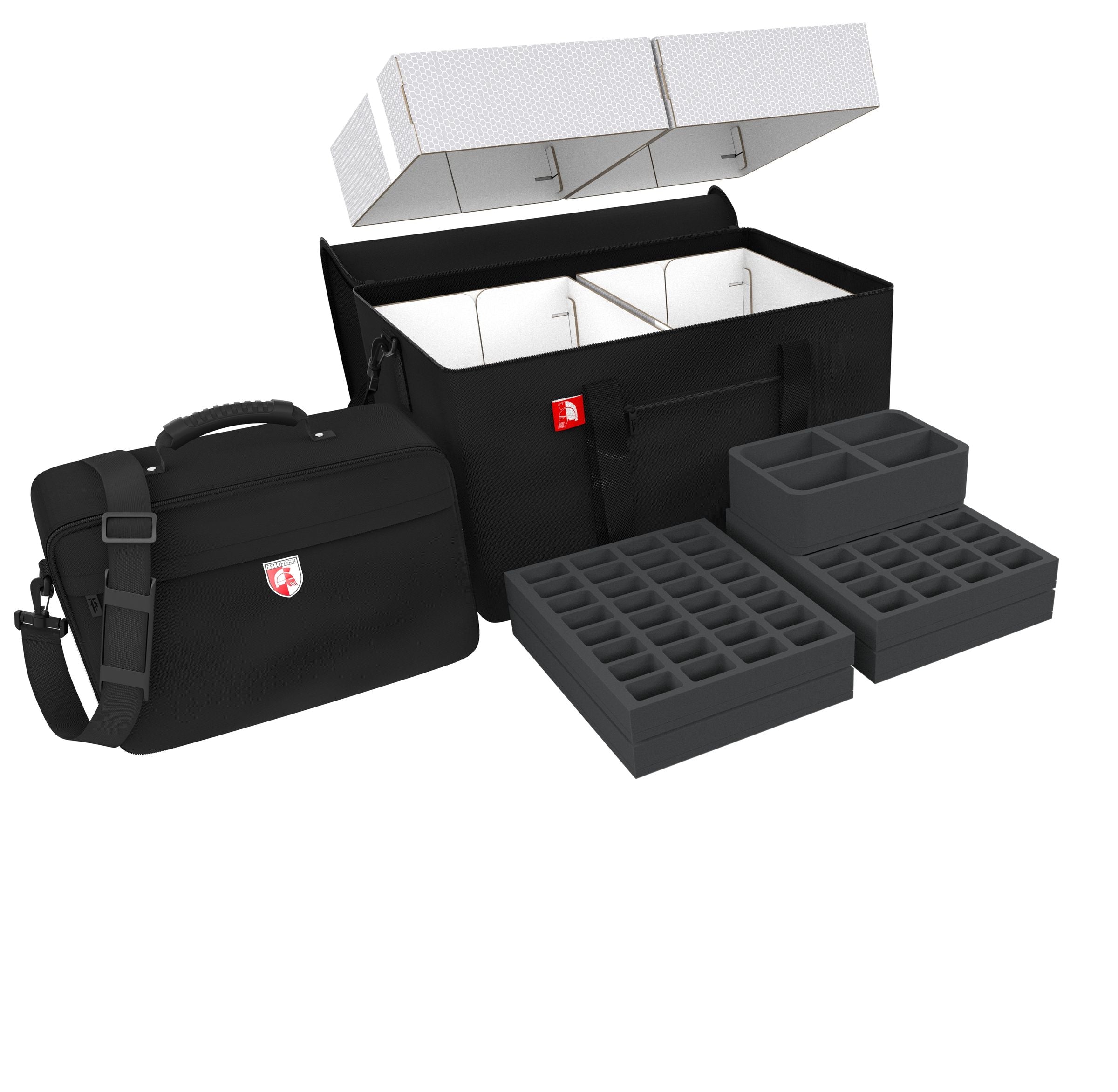 Pour rendre justice aux dimensions épiques du set complet de "Ankh : Gods of Egypt", nous avons réuni dans un paquet 1 sac Feldherr Transporter, 2 Storage Boxes, 1 sac MAXI, 5 Full-Size, 17 inserts en mousse Half-Size et 1 tapis en mousse et 5 toppers. Ainsi, toutes les figurines et tout le matériel de jeu, sont parfaitement protégés et rangés de façon claire.