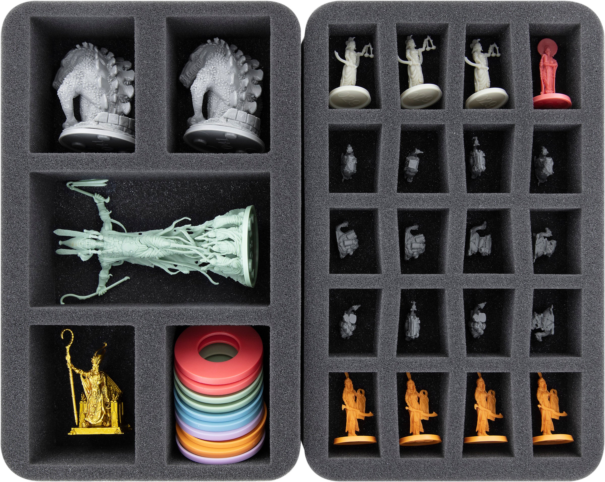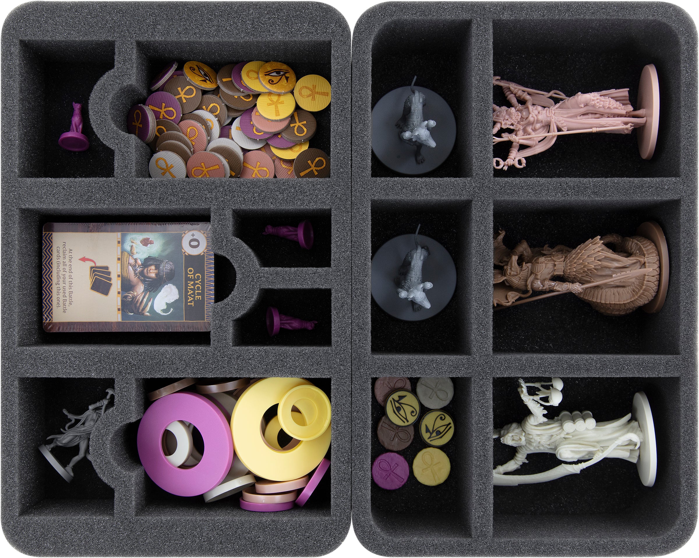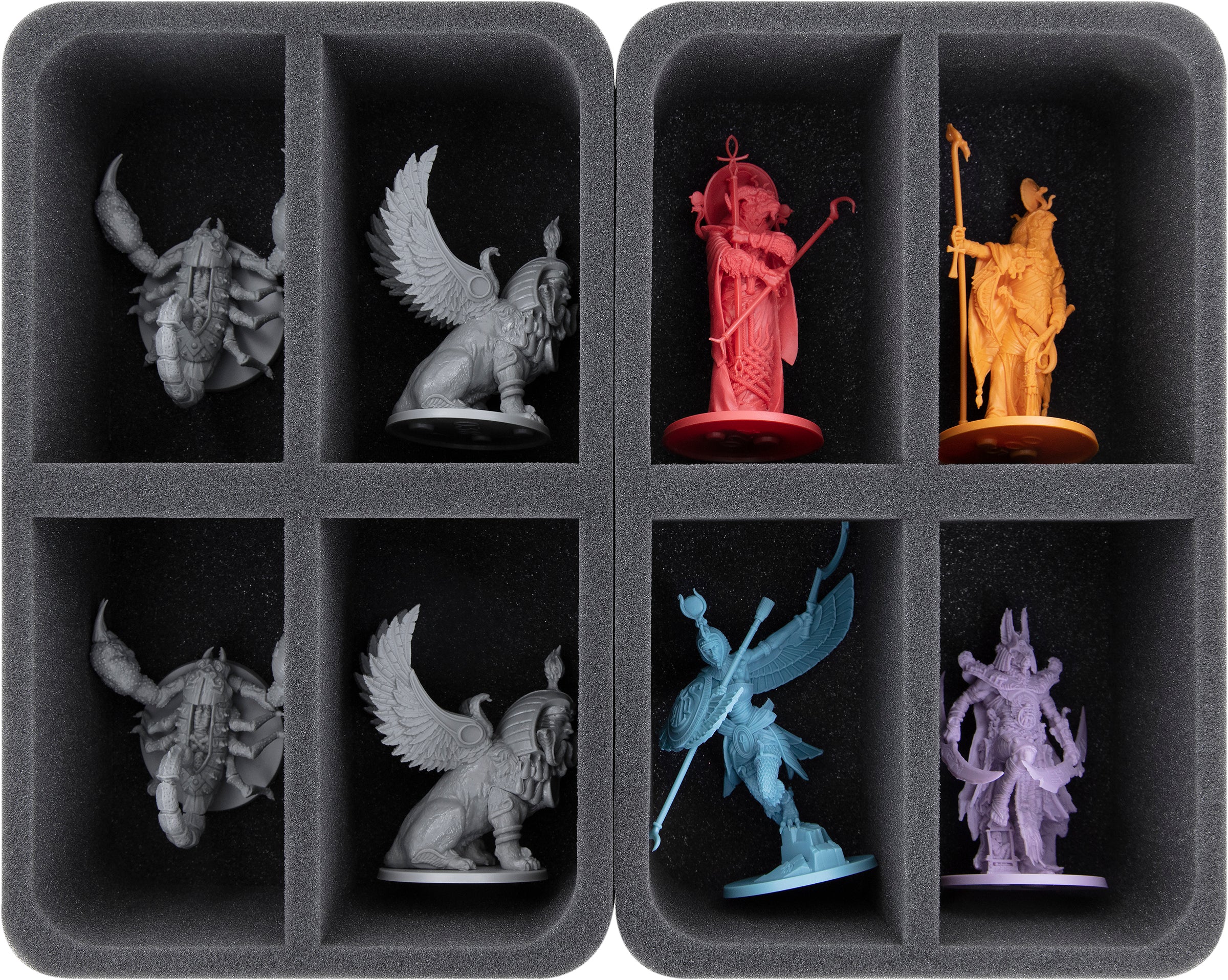 - 2 plateaux en mousse Full-Size avec 32 compartiments chacun pour les petites figurines comme les guerriers, les prêtres, les momies chat, les momies, les satyres + les sphinx 3D exclusifs Kickstarter (FSMEDS040BO)