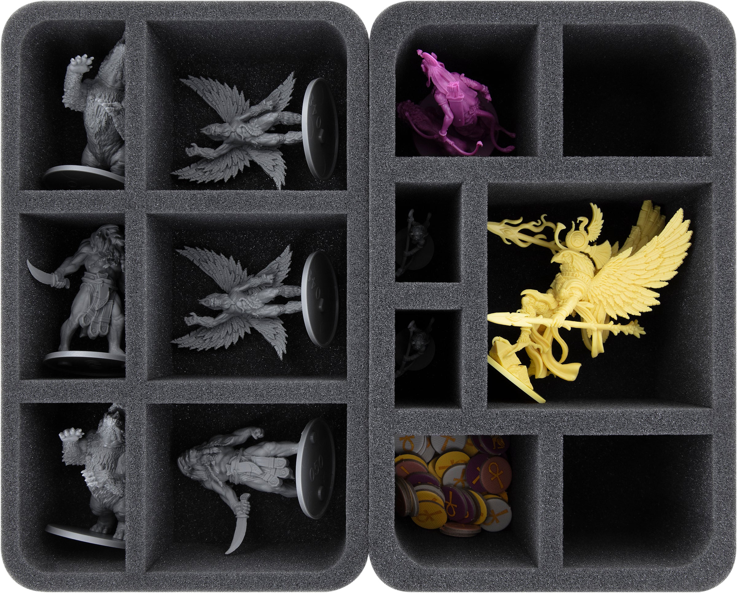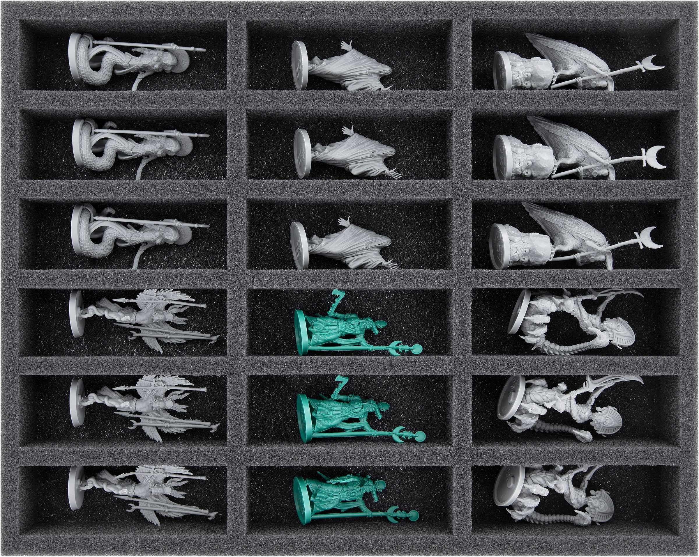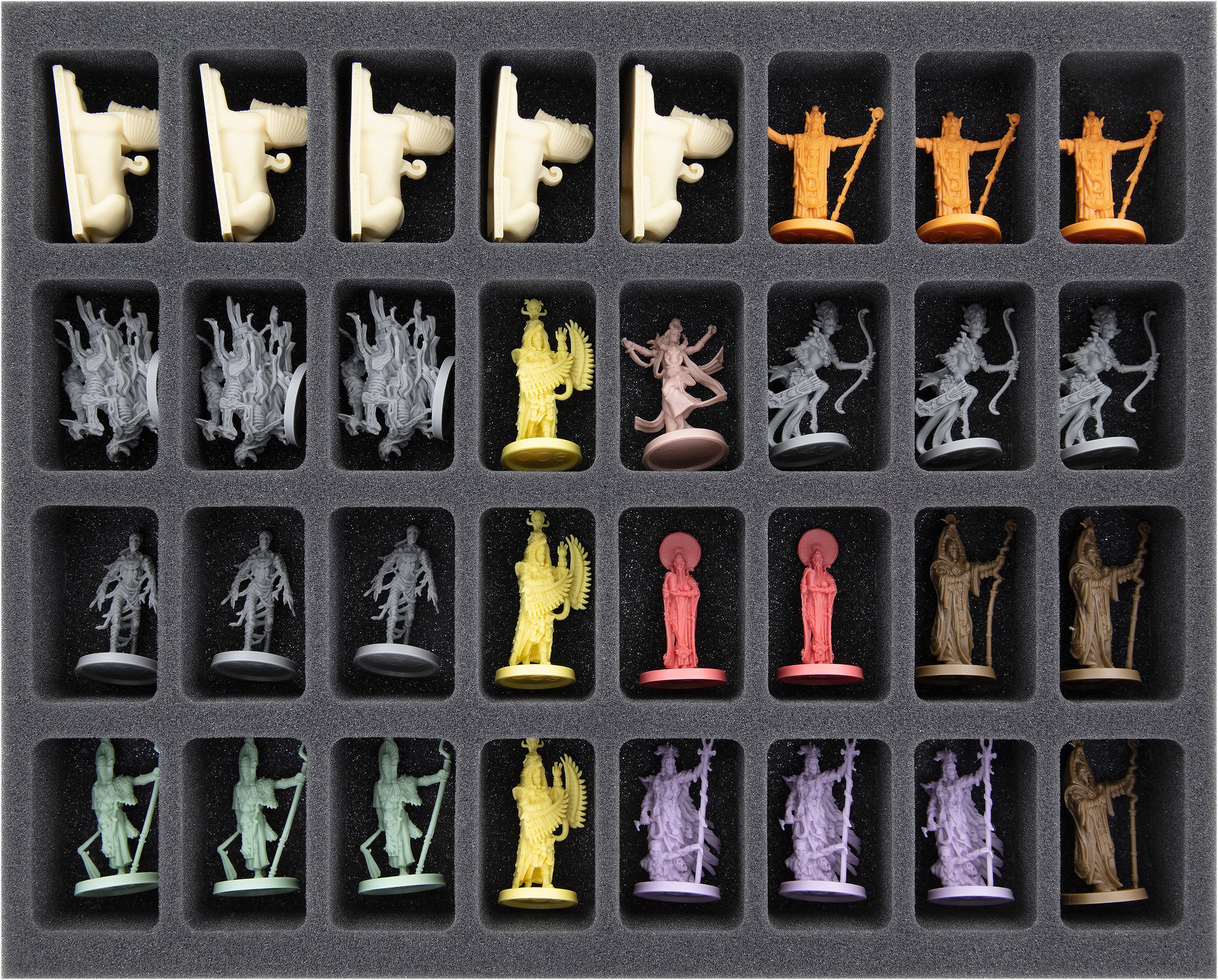 - 2 plateaux en mousse Full-Size avec 32 compartiments chacun pour les petites figurines comme les guerriers, les prêtres, les momies chat, les momies, les satyres + les sphinx 3D exclusifs Kickstarter (FSMEDS040BO)