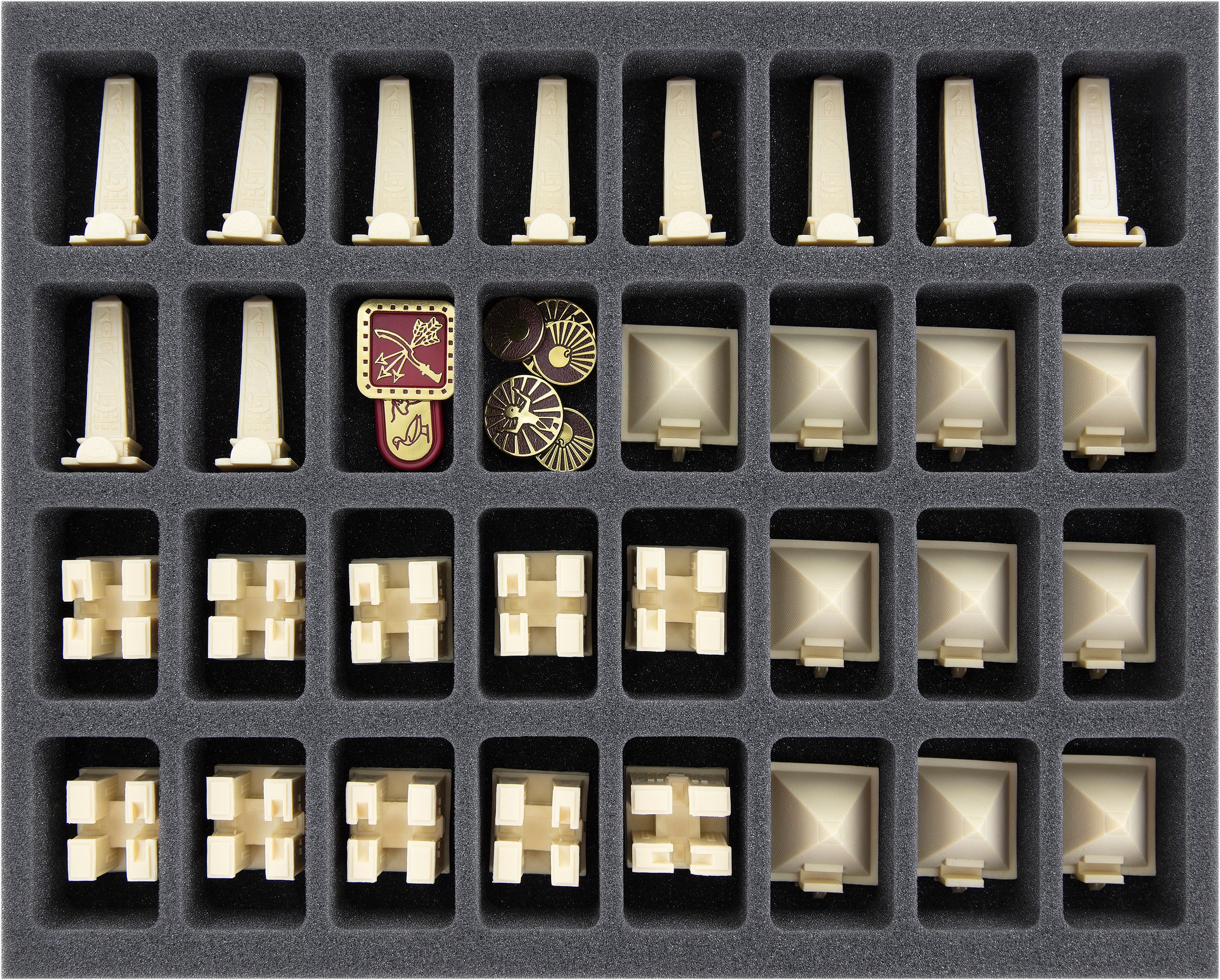 - 1 plateau en mousse Full-Size avec 32 compartiments pour des figurines comme les temples 3D, les obélisques 3D et les pyramides 3D + matériel de jeu (FSMEDS040BO)
