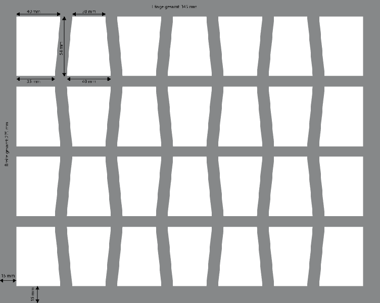 Plateau en mousse avec fente en forme de C. Les fentes ont une empreinte conique. Nous avons les rainures disposées de manière à gagner de la place et à optimiser les distances entre les rainures. La profondeur de 50 mm de la mousse est obtenue à partir d'une base en mousse de 10 mm et d'un plateau en mousse Raster avec 40 mm Profondeur effective.