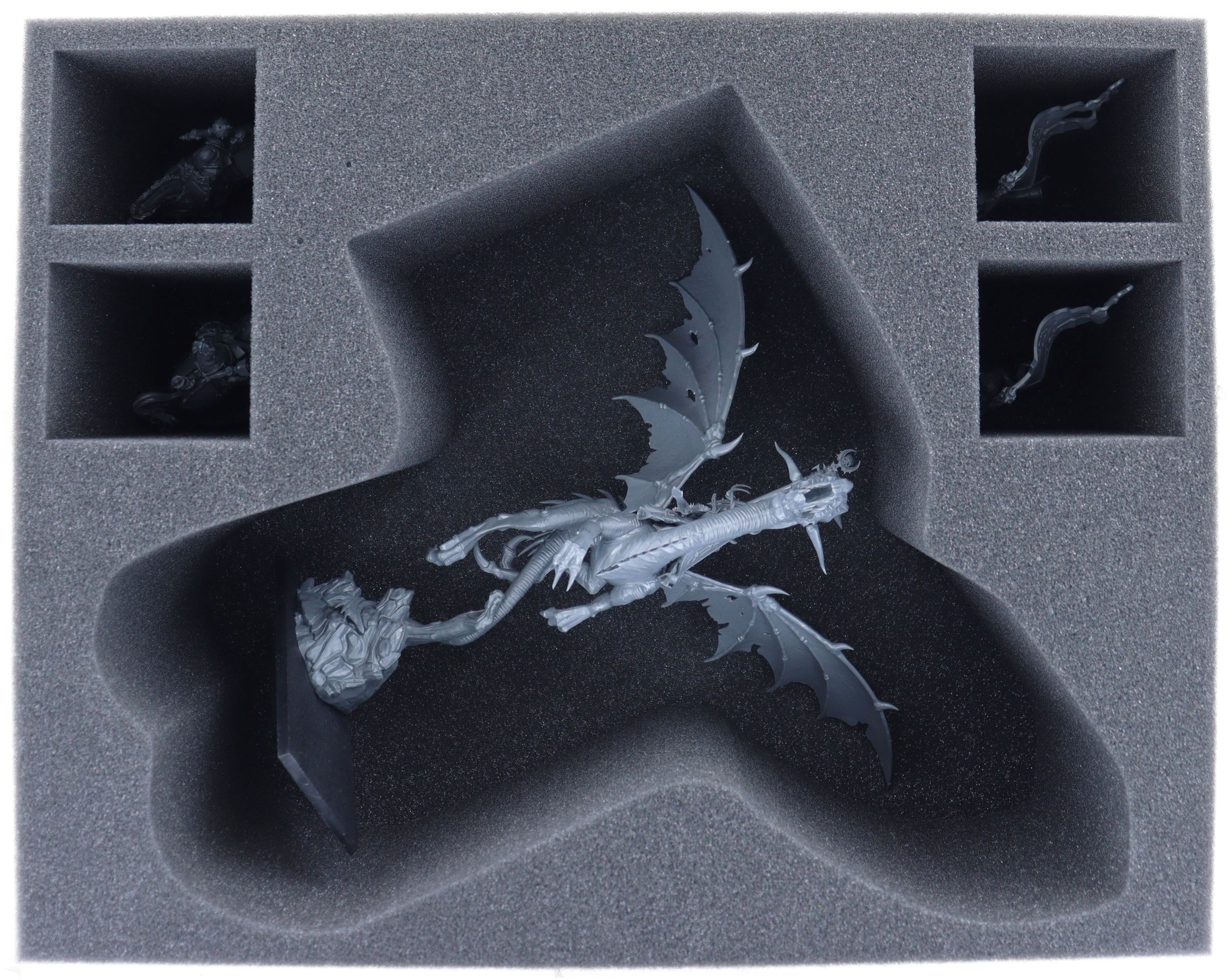 En plus de Sorceress on Black Dragon ou Dreadlord on Black Dragon, il y a encore de la place pour 4 figurines supplémentaires. Les compartiments rectangulaires peuvent être remplis avec les figurines de votre choix.Ils conviennent, par exemple, à d'autres figurines de Cities of Sigmar.