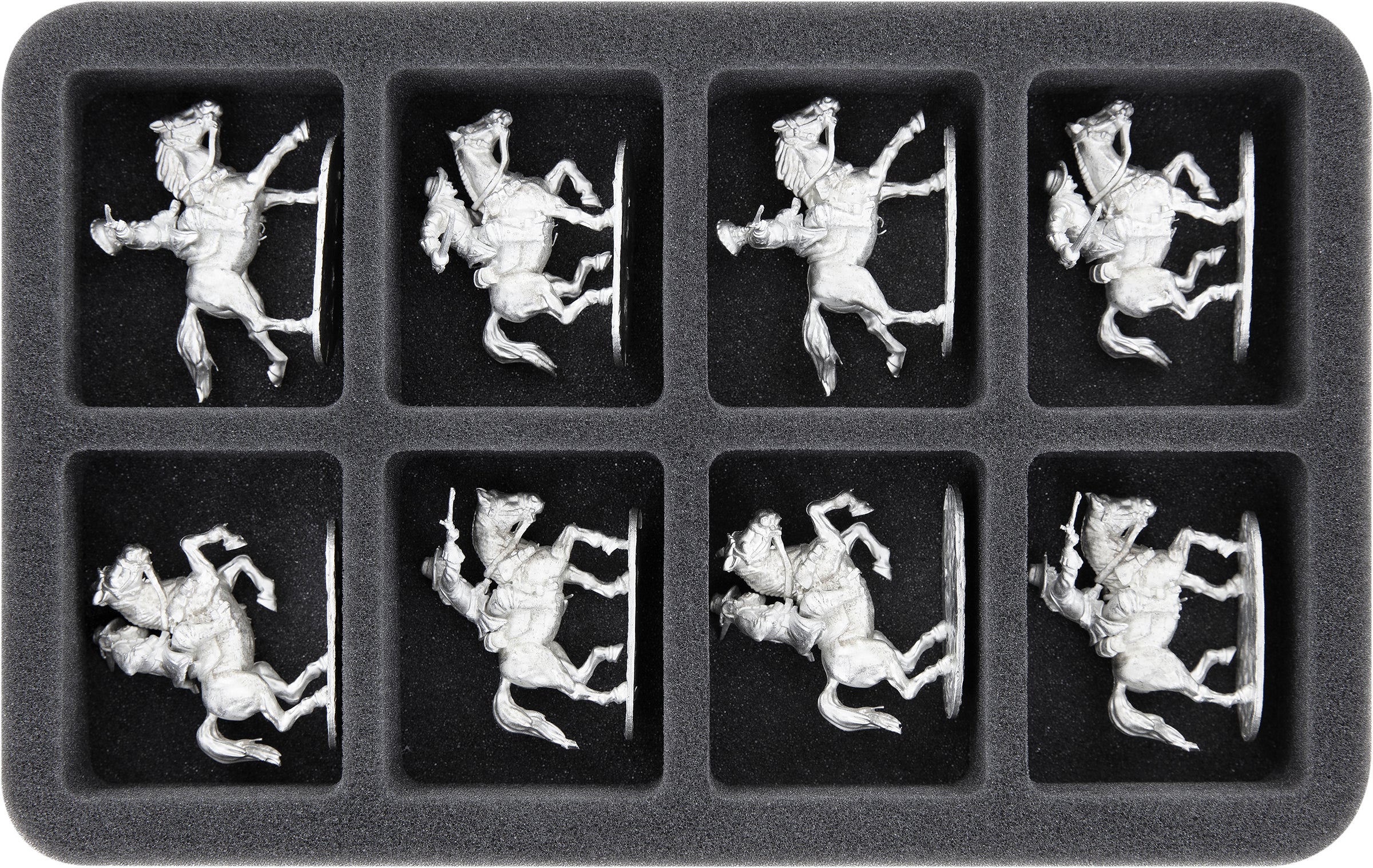 Avec ce plateau en mousse Feldherr, jusqu'à 8 figurines sont stockées en toute sécurité. Les compartiments de même taille sont idéaux pour le stockage d'unités volumineuses, bien disposées et bien protégées.