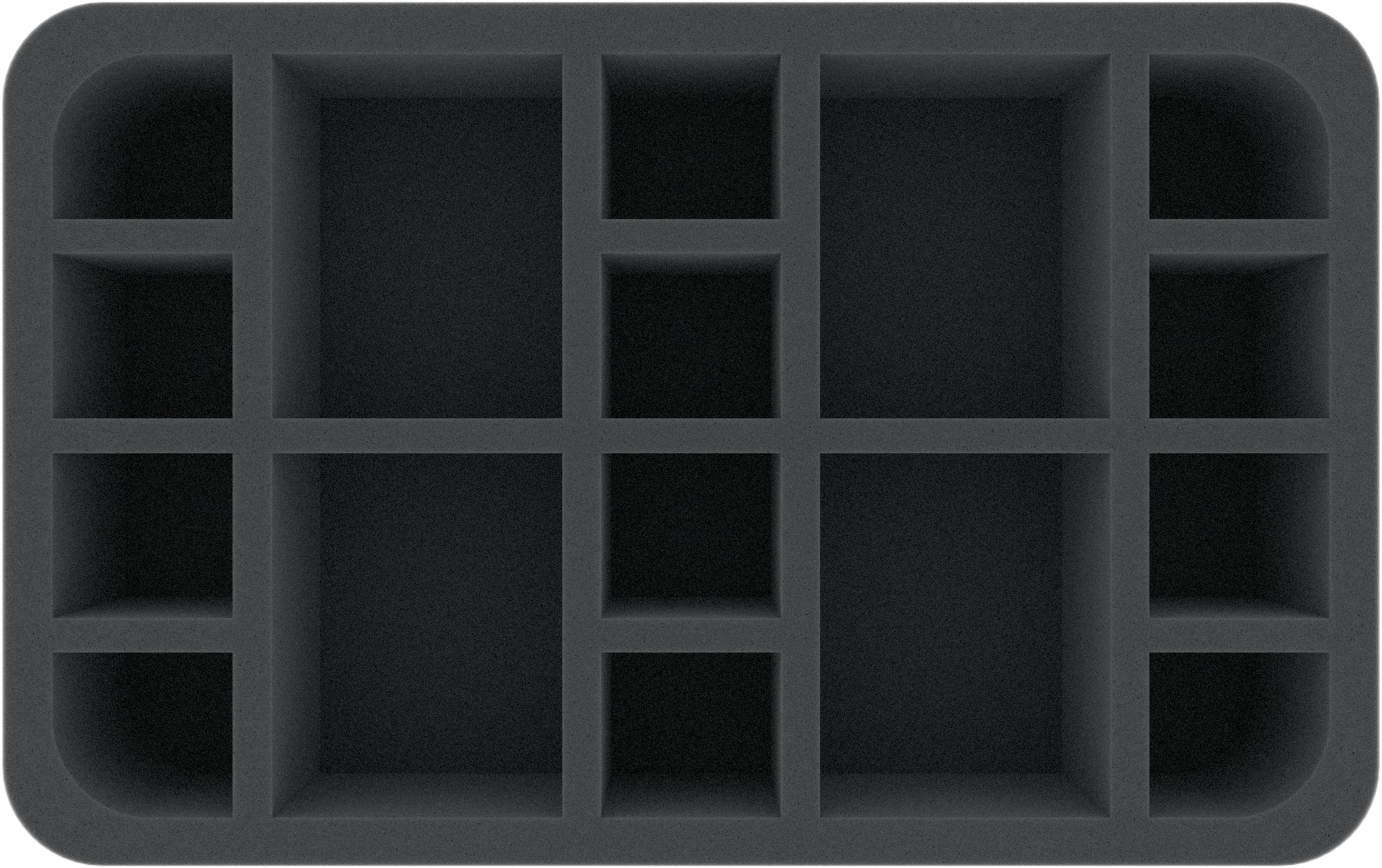 Dans les 16 compartiments de ce plateau en mousse, chaque Ogre et chaque Gnoblar a son propre compartiment. Les quatre Ogres sont rangés dans les grands compartiments. Et pour que les Gnoblars puissent passer un bon moment pour changer, ces 12 gobelins peuvent aussi se reposer dans des compartiments individuels sur la mousse souple.