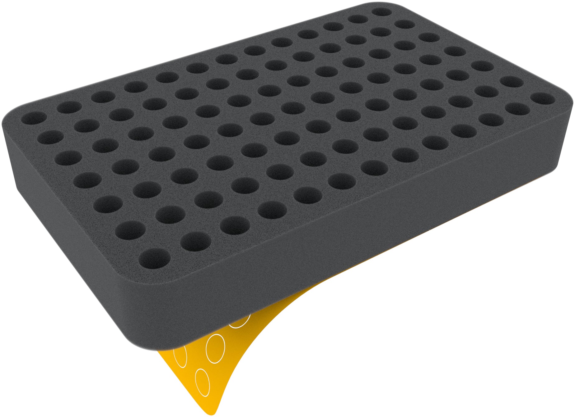- 1 Half-Size mousses de rangement avec 91 compartiments, avec un dessous auto adhésif + base en mousse assortie, pour petits flacons pulvérisateurs (HSMFKA040S + HS010B)