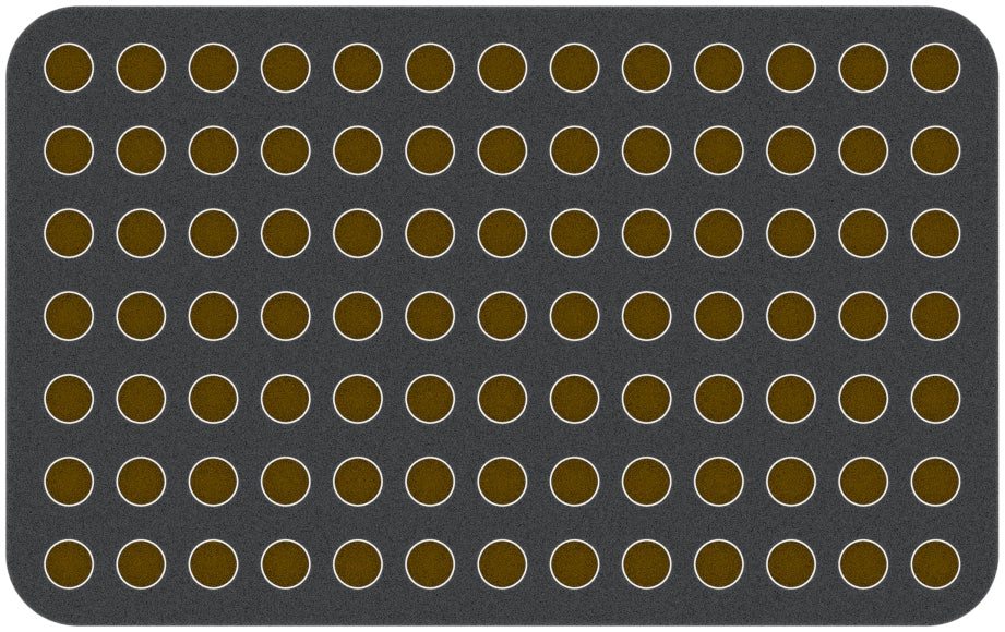 Chacun des 91 compartiments a un diamètre de 13 mm et une profondeur de 40 mm.